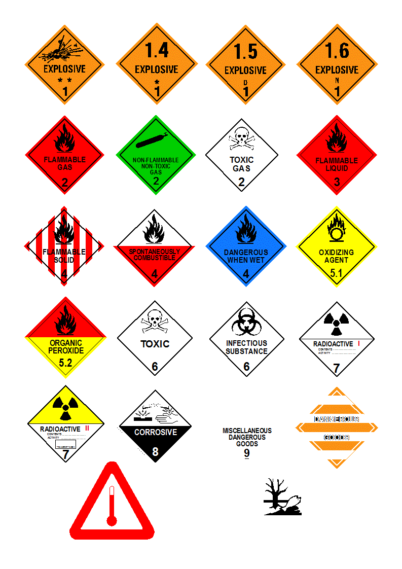 Alle Gefahrzettel (10x10cm) und auch Placards (25x25cm) können Sie bei uns bestellen (auch in Kleinstmengen). Preise auf Anfrage.